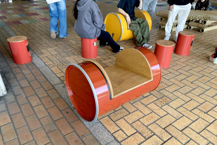 ほかにも西日本工業大学の学生さんたちが「学生の巣プロジェクト」としてドラム缶などを使った家具を設計・製作。