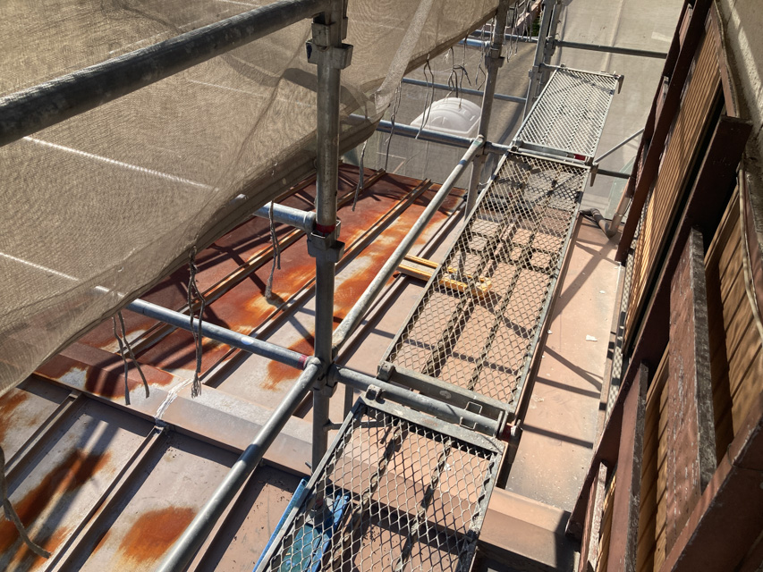 屋根の金属部分に広範囲の錆びが見られ、長年の雨風によるダメージが蓄積していました。